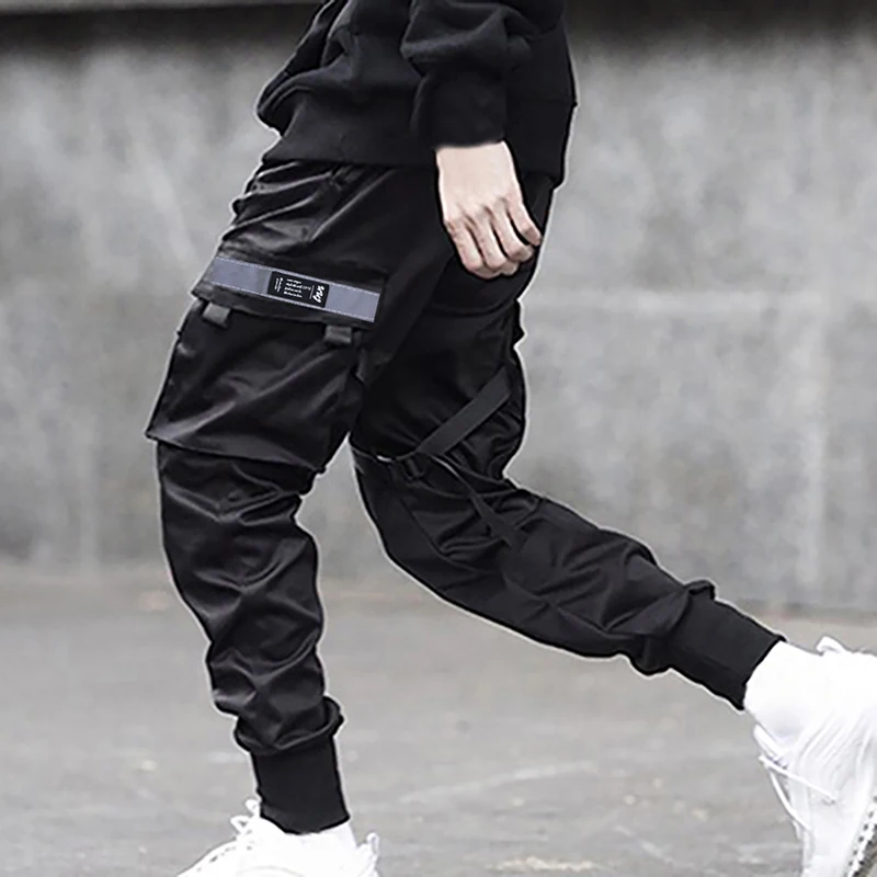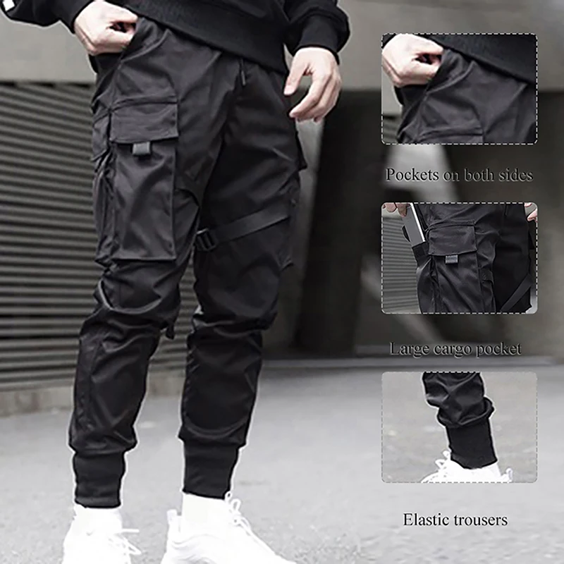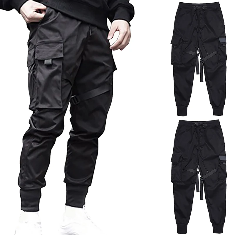 Black Hip Hop Cargo Pants Men Streetwear Fashion Cotton Joggers Sweatpants Casual Trousers Summer Harajuku Tide Clothing