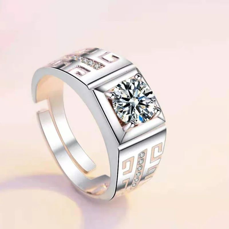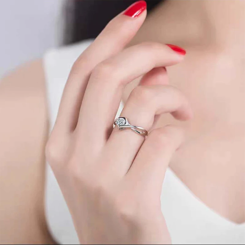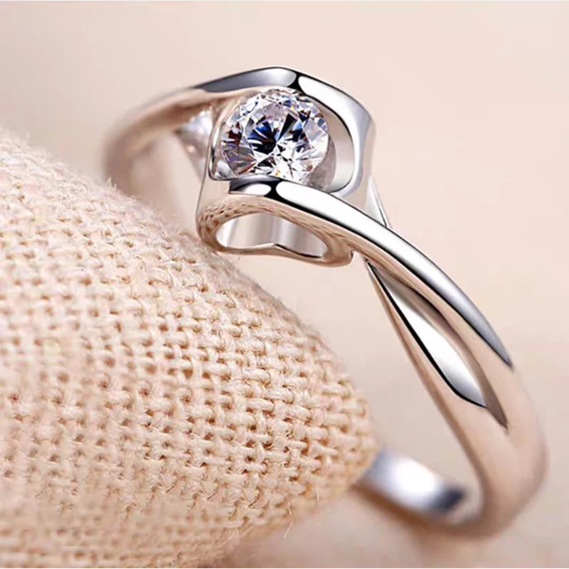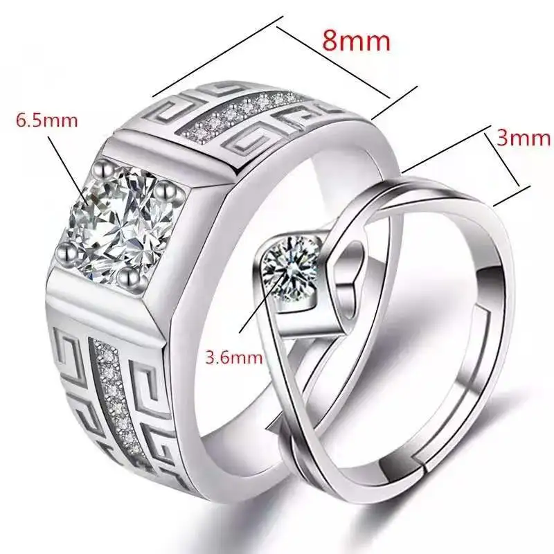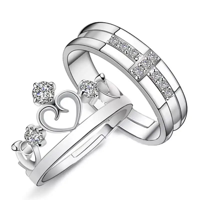 2Pcs/Pair Copper Silver Plated Classic Couple Resizeable Engagement Ring Men Women Crystal Adjustable Valentine Gift Wholesale