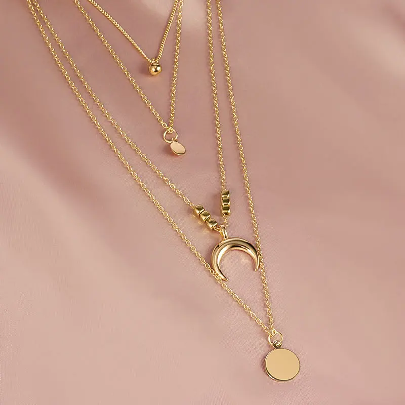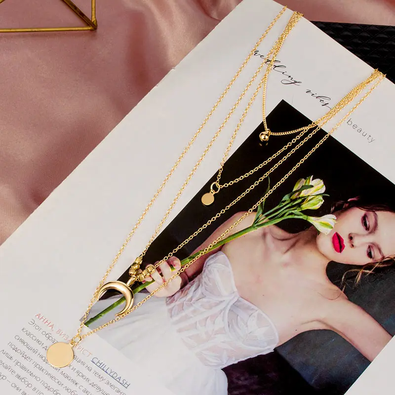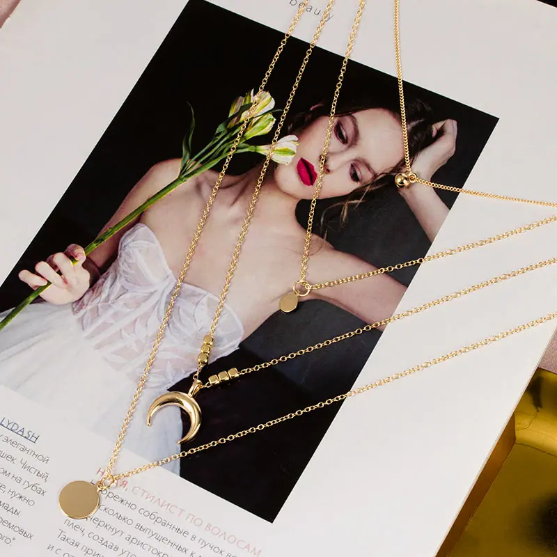 Collier Chain Necklace Multilayer Moon Alloy Metal Disc Gold Pendant Necklace For Women New Trend Female Jewelry Collar DSers