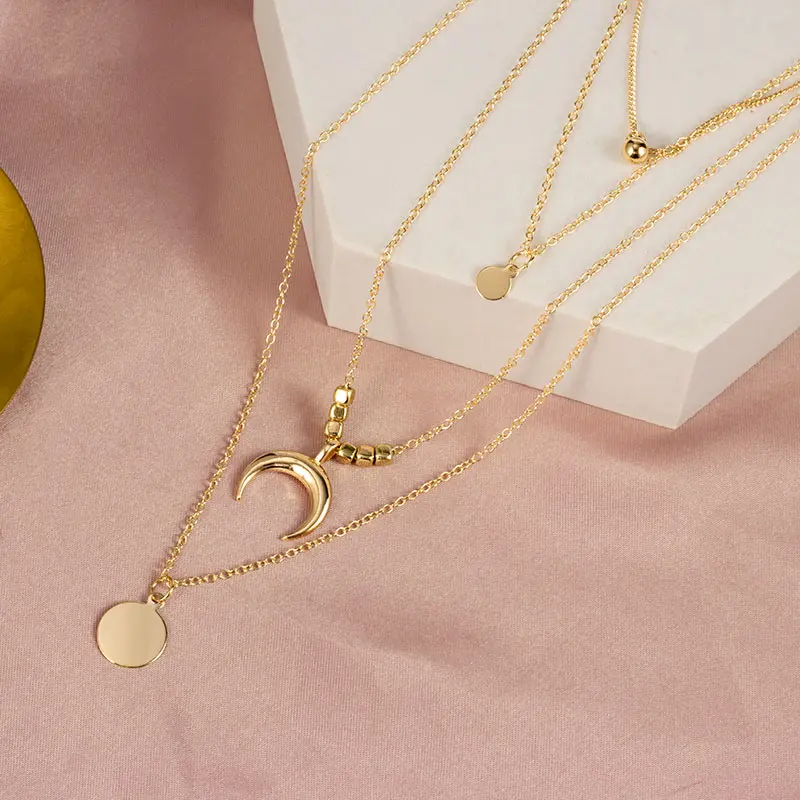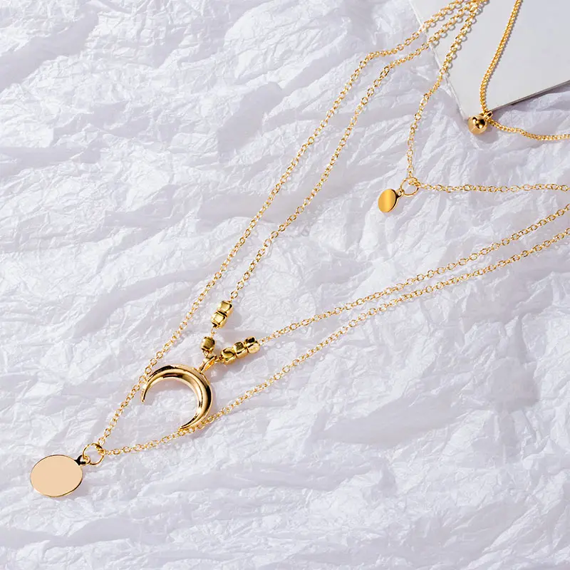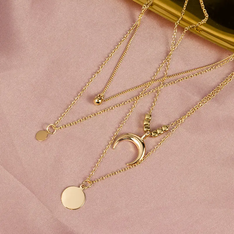 Collier Chain Necklace Multilayer Moon Alloy Metal Disc Gold Pendant Necklace For Women New Trend Female Jewelry Collar
