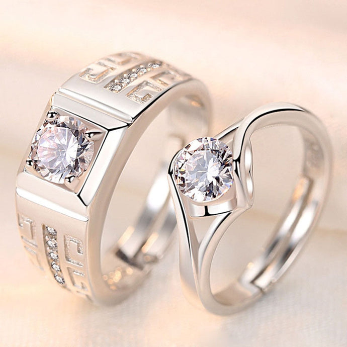2Pcs/Pair Copper Silver Plated Classic Couple Resizeable Engagement Ring Men Women Crystal Adjustable Valentine Gift Wholesale