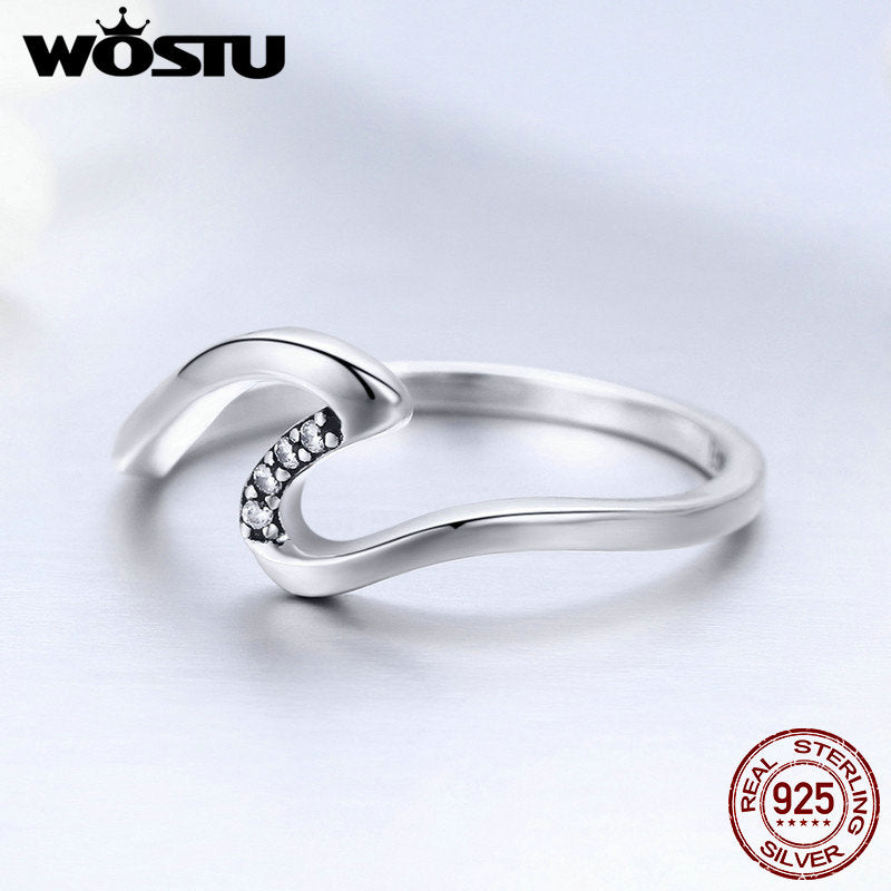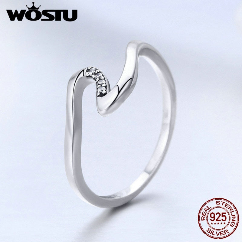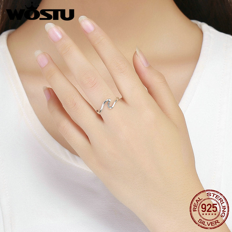 100% 925 Sterling Silver Wave Finger Rings for Women Wedding Engagement Party Sterling Silver Jewelry Gift