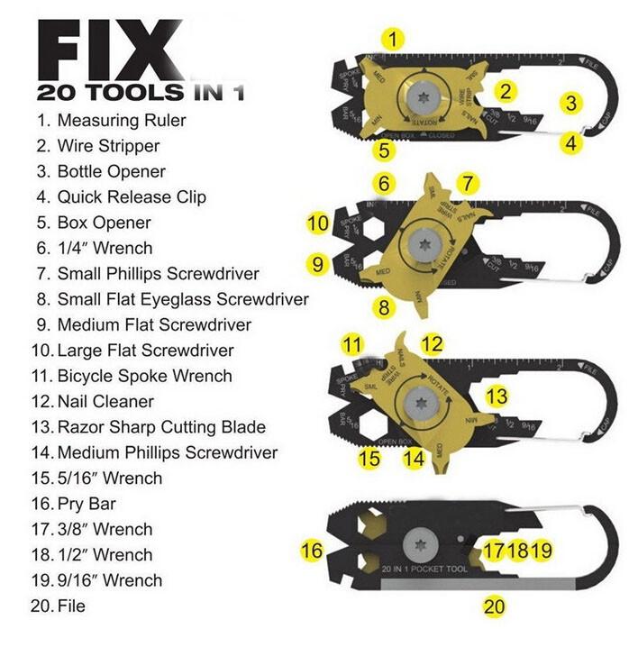 Clips to anything from your tool box to your belt loop. With the quick release clip, you have anything from a bottle opener to a measuring ruler or nail file. Made with durable Gold titanium coated disc, black stainless steel body and K5 carbon steel blade. 1 small carry tool that can fix just about anything. Convenient, easy to use and no more bulky tool bags taking up space. You can take it anywhere.
