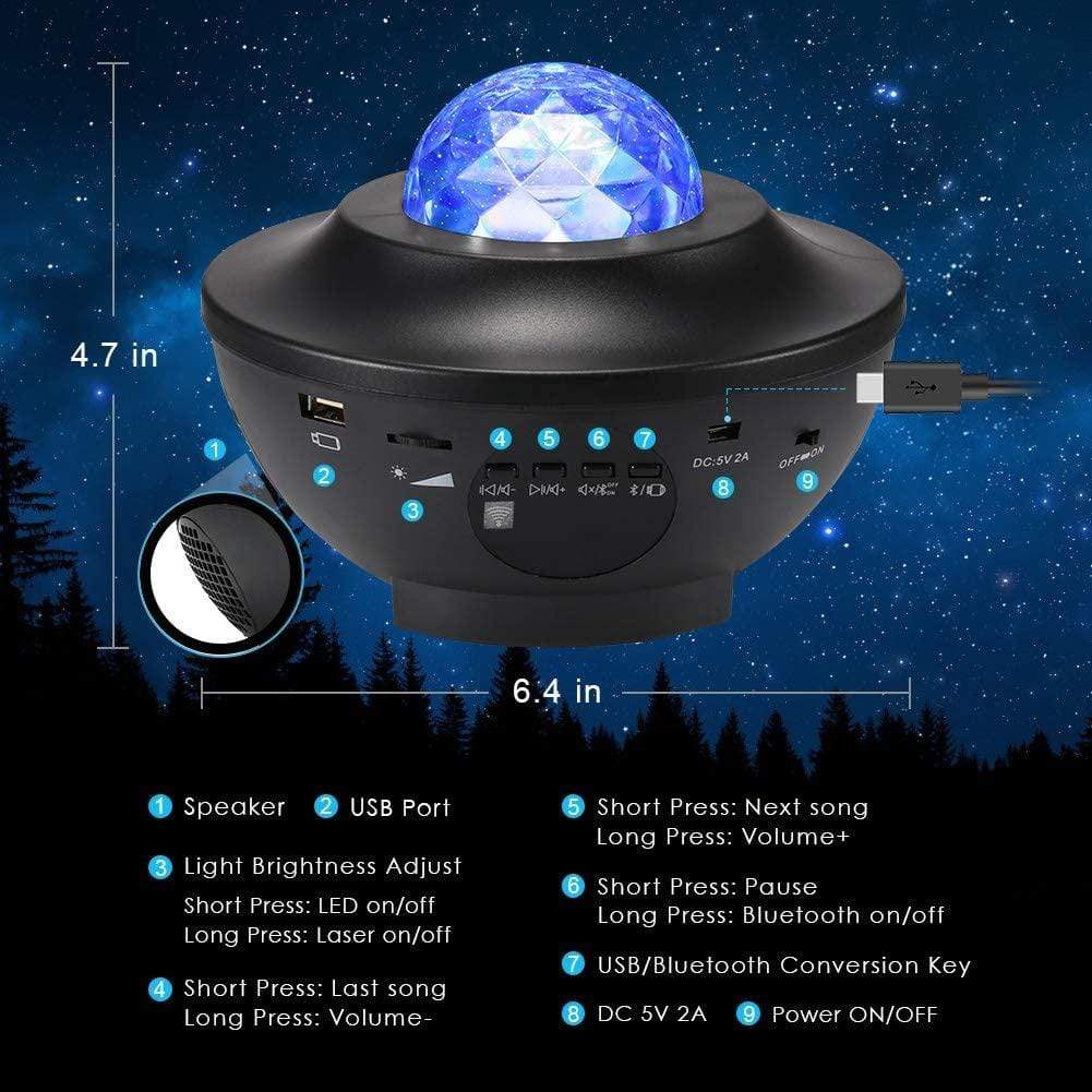 The Nebula light projects a realistic starry night sky onto the walls and ceiling. It's your own personal galaxy! Sound-activation will make a flashing light to change patterns with the beat of the music. Whether your looking to improve your sleep or looking to have a sparkling party at night, Nebula is for you!