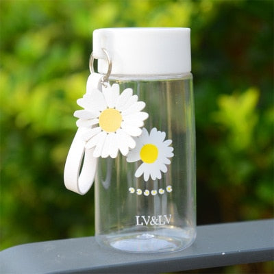 500ml Small Daisy Transparent Plastic Water Bottles BPA Free Creative Frosted Water Bottle With Portable Rope Travel Tea Cup
