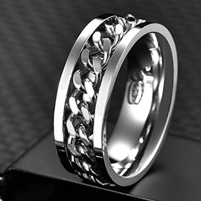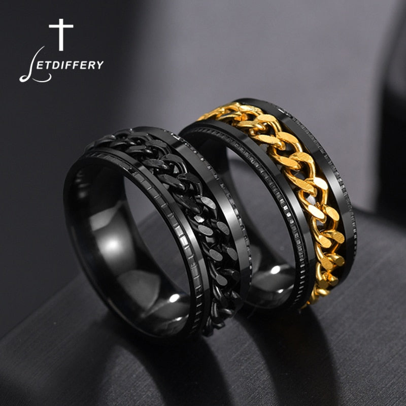 Punk 8mm Spinner Chain Men Rotatable Ring Black Blue Stainless Steel Rotatable Cool Jewelry Party Gift Anel Alliance