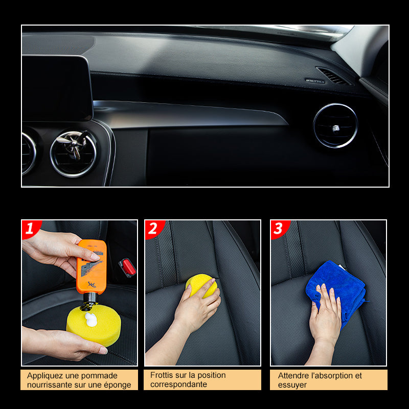 • SÉCURITÉ - Fabriqué à partir de matériaux écologiques, utilisant une formule sans huile, sans danger ni odeur, il n'endommage pas votre voiture ni les autres articles en cuir.