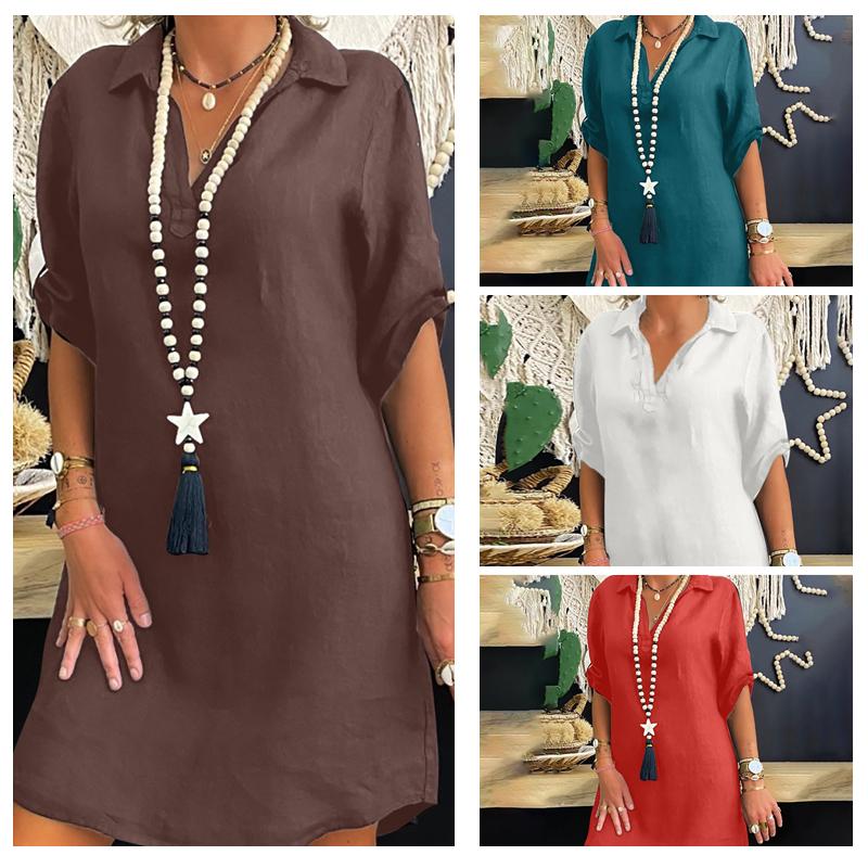 - 1 * Robe Chemise Nordique à Manches Courtes