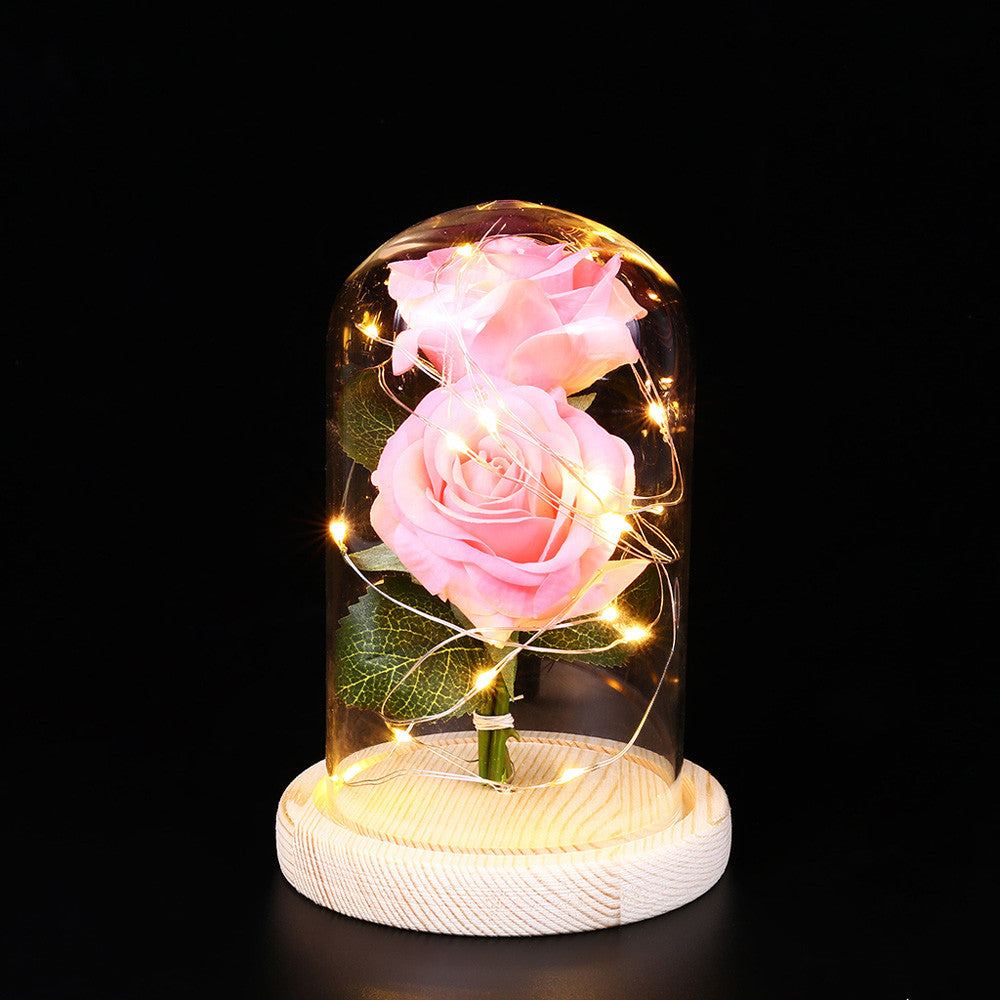 Romantic Immortal Flower Micro Landscape Rose Simulation Glass Shade Led Llight