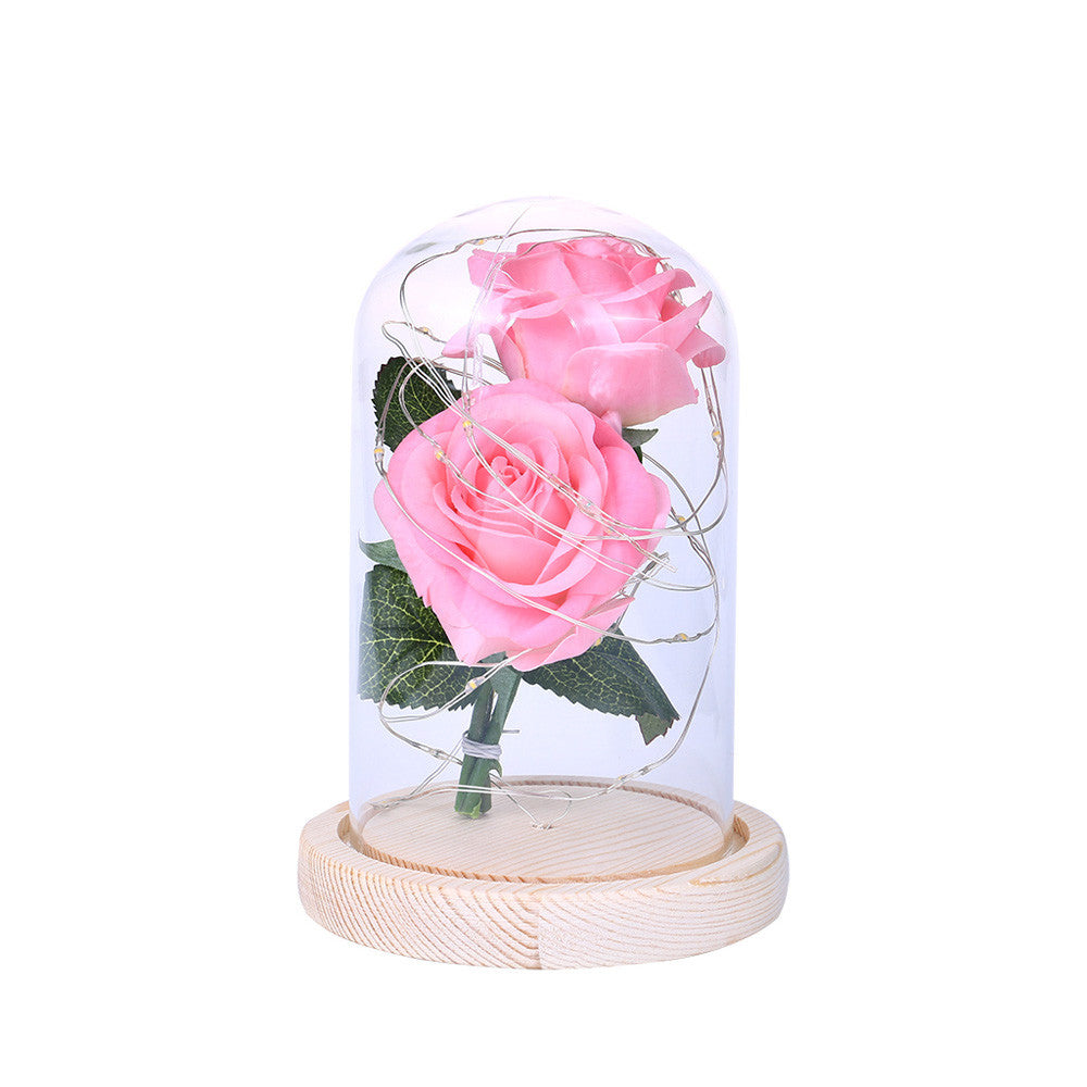 Romantic Immortal Flower Micro Landscape Rose Simulation Glass Shade Led Llight cjdropshipping