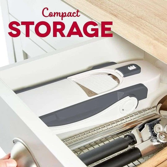 PERFECT GIFT: The perfect wedding or new home gift, the mandoline’s small size takes up little counter or cupboard space, and is a great addition to anyone’s kitchen!