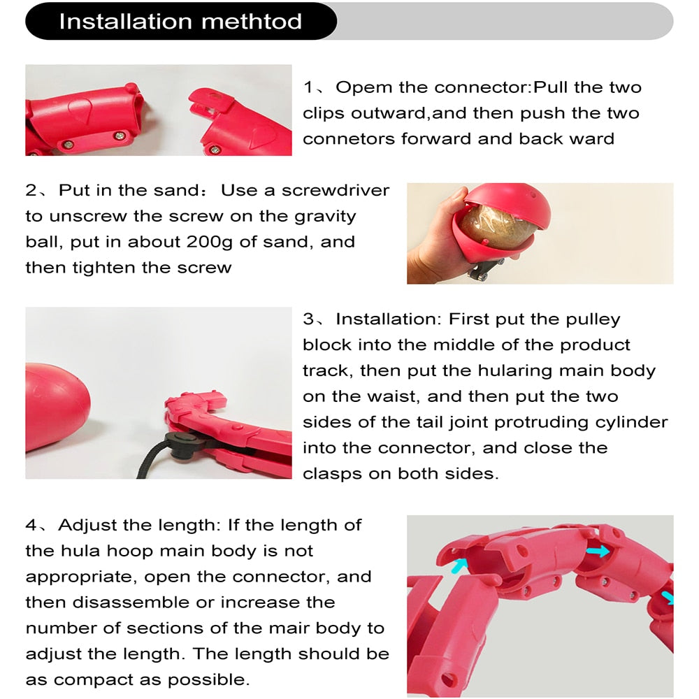 The hoop can be composed of sections, which can increase or decrease the number of slides on the main body to adjust the waist size.
