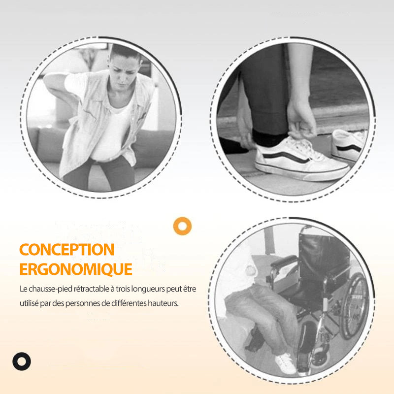 Le chausse-pied rétractable à trois longueurs peut être utilisé par des personnes de différentes hauteurs, vous offrant une vie plus pratique!!
